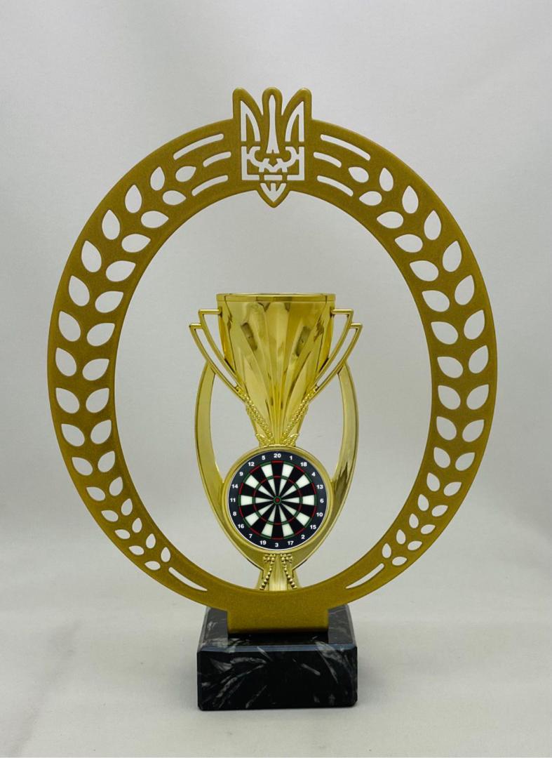 Артикул: AR1.D31712.G03Унікальний Кубок з металу - чудове поєднання символіки України і Вашого виду спорту!