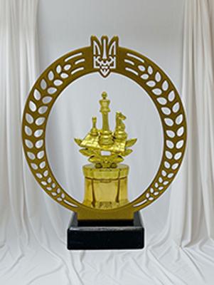Артикул: AR2.P031Унікальний Кубок з металу - чудове поєднання символіки України та витонченої статуетки шахи.