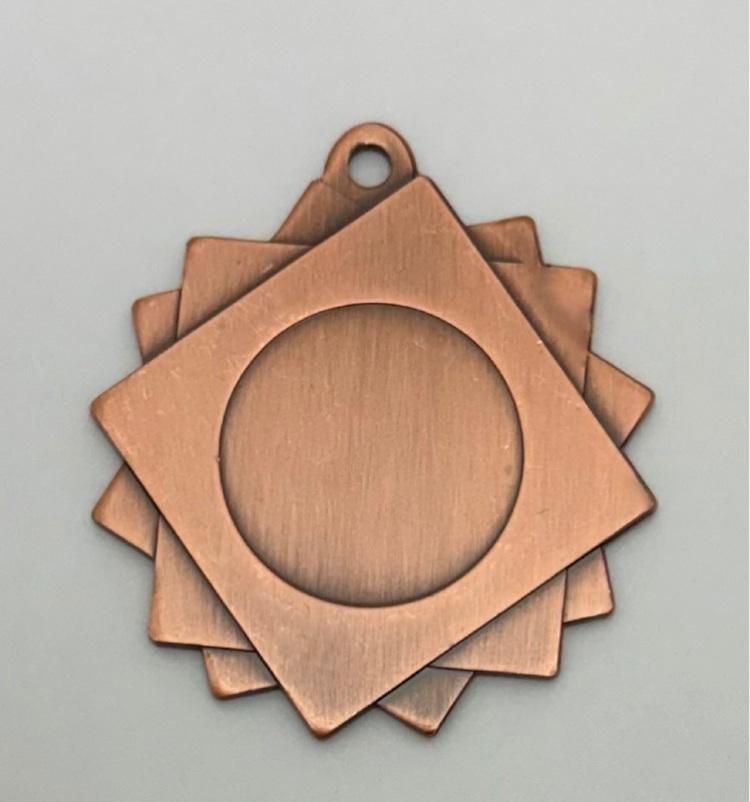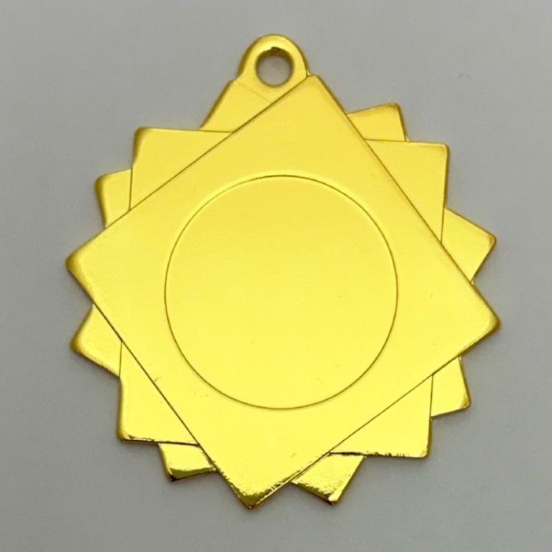 Артикул: D9362Медаль металева діаметром 50 мм у трьох кольорах: золото, срібло, бронза. Оригінальна форма та незвичний дизайн! Ця медаль здивує і вразить Ваших переможців! На аверсі має місце під жетон з нанесенням Вашого Лого та тексту!